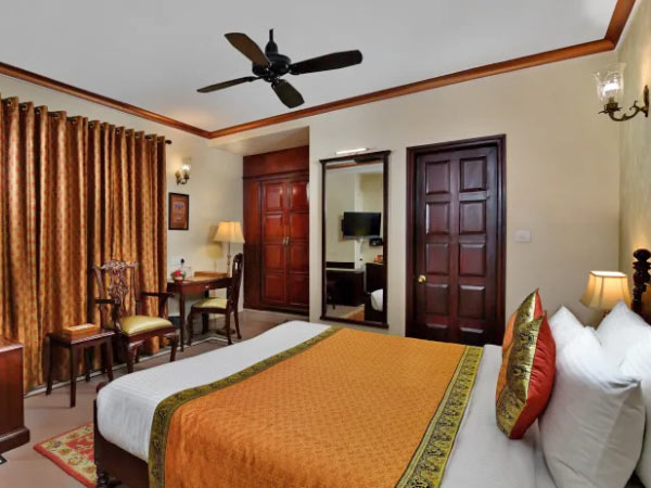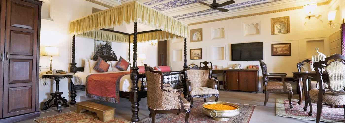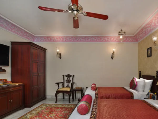 The Nadidhara Rooms in Varanasi offer resplendent views of the city and the beautifully embellished corridors of the property. These rooms come with the option of twin beds or a double bed.