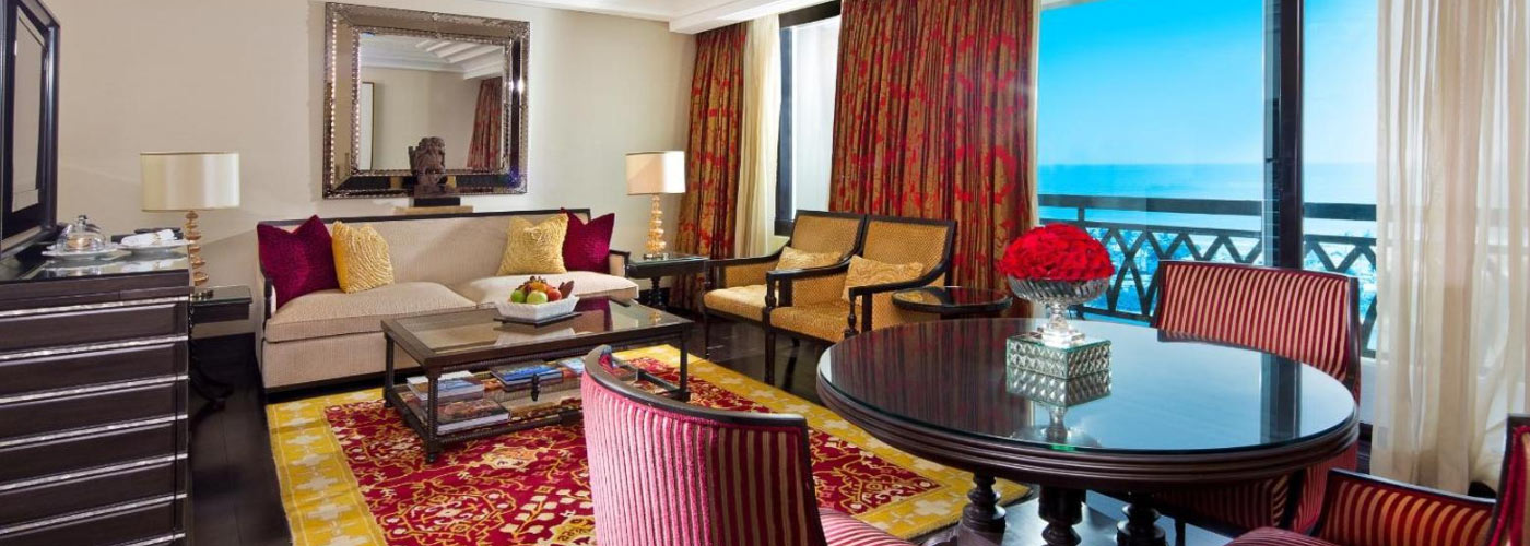 Experience the good life in this luxurious suite which features two spacious bed rooms, an elegant living room, dining table, a workstation equipped with all essentials, and a walk-in wardrobe. The décor is sumptuous developed keeping in mind traditional regional accents with contemporary design overlooking the city or the seascape.