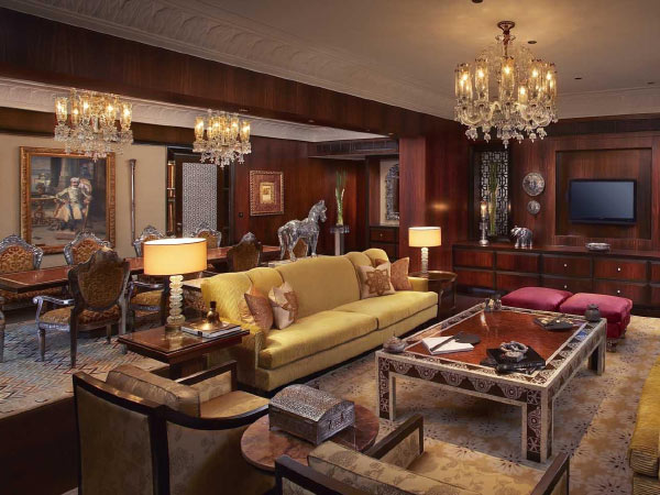 When your stay should reflect your achievements, nothing less than a royal choice will do. Welcome to the Maharaja Suite. The plush interiors are adorned by fine art and artefacts that weave a spell of luxury. The 3,585-sq.-ft. suite comes with a living room, study, dining area and master bedroom with a separate walk-in wardrobe. The king-size bathtub and jacuzzi as well as the separate shower stall and water closet only add to the feel of luxury. Built into the suite, for the discreet comfort of its distinguished guests, is uninterrupted relaxation, recreation and complete privacy. In other words, find here an attached massage parlour, a spacious plunge-pool and sprawling courtyards. An interconnecting Grand Heritage View Balcony room is also available for accompanying guests.