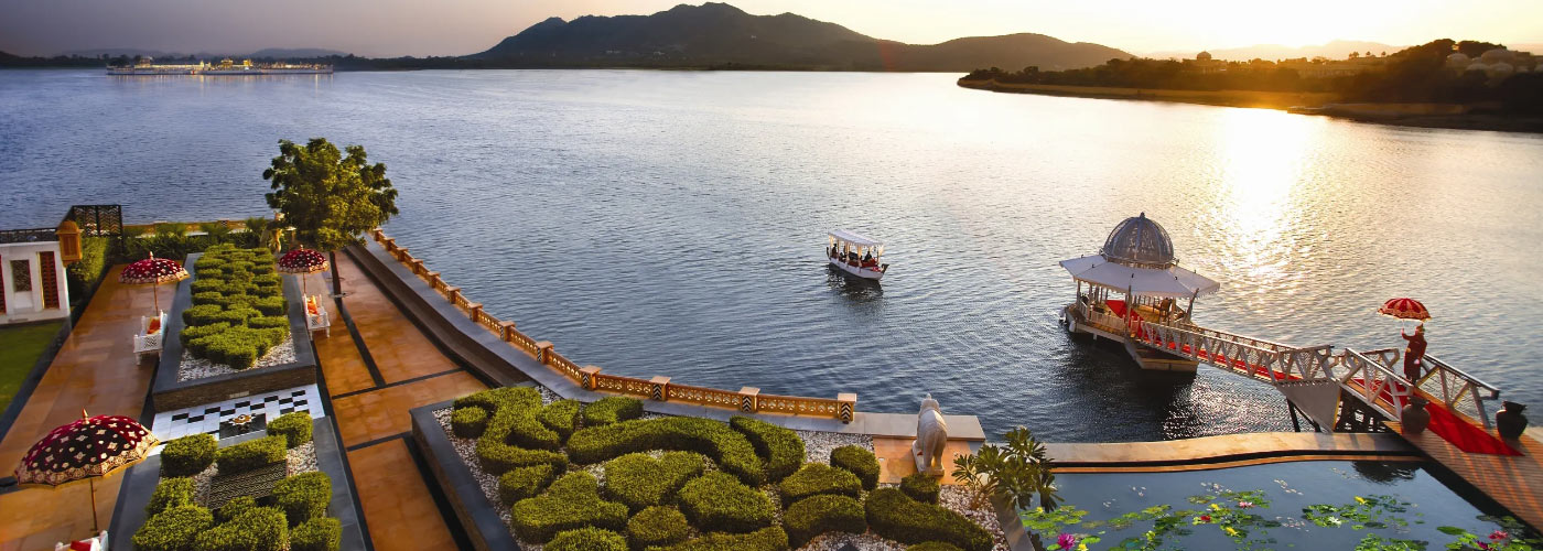 Located beside the tranquil Lake Pichola, The Leela Palace Udaipur is flanked by the rolling Aravalli mountain ranges. It is a modern palace hotel in Udaipur which evokes the grandeur and opulence of the Land of the Mewars. All the 80 rooms at this 5 star hotel are stately and lavishly appointed with exquisite embellishments and traditional artisan crafts inspired by the rich cultural heritage of Rajasthan. You can enjoy scenic views of the heritage city and the mountains from every room. The luxurious offerings and the immaculate services and facilities will make your holiday indulgent and memorable.