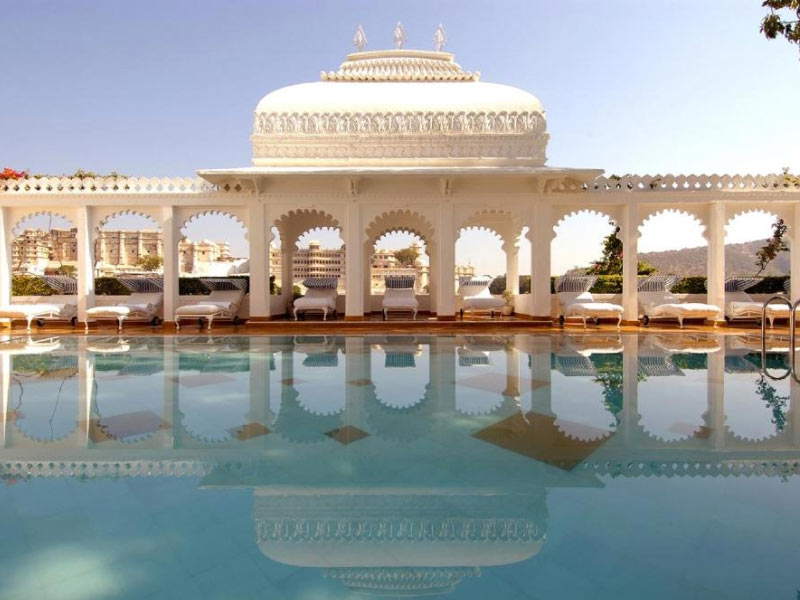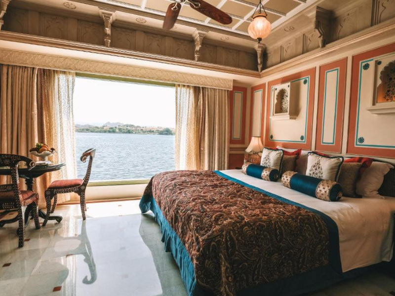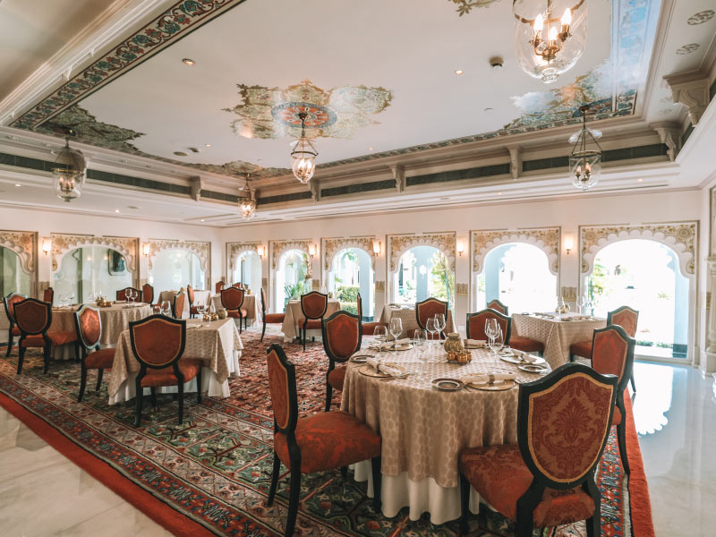 See HotelThis heritage hotel in Udaipur has 65 luxurious rooms and 18 grand suites. Its location on an island in the midst of a lake affords every room breathtaking views of the neighbouring City Palace, Aravalli Hills, Machla Magra Hills and Jag Mandir. The incomparable location provides the perfect backdrop for the exquisite cuisines at the elegant restaurants of Taj Lake Palace. These are open only to resident guests. Signature speciality restaurants at this palace serves a choice of cuisines. Neel Kamal for authentic Rajasthani and other dishes from India; and the seasonally open-air Bhairo for contemporary European delicacies. In the evening, indulge in signature martinis, cocktails and a grand collection of premium international spirits at the bar, Amrit Sagar.