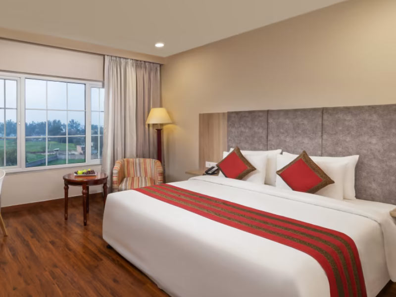 Nidhivan Sarovar Portico, Vrindavan, is a contemporary hotel that perfectly captures the essence of this sacred city. Located in the Mathura district, the hotel is just 6.8 km from the revered Banke Bihari Ji Temple and 11.3 km from the magnificent ISKCON Temple. Nidhivan Sarovar Portico, Vrindavan, exudes an ambience of warmth and cosiness in a contemporary setting. Situated strategically, close to temples and major tourist spots, this hotel in Vrindavan offers air-conditioned rooms in three categories. With modern-day amenities, fine furniture, and pleasing decor, we ensure that your stay in Vrindavan is a pleasant one. The in-house restaurant - Tripti, serves pan-Indian delicacies and is one of the best vegetarian restaurants in Vrindavan.